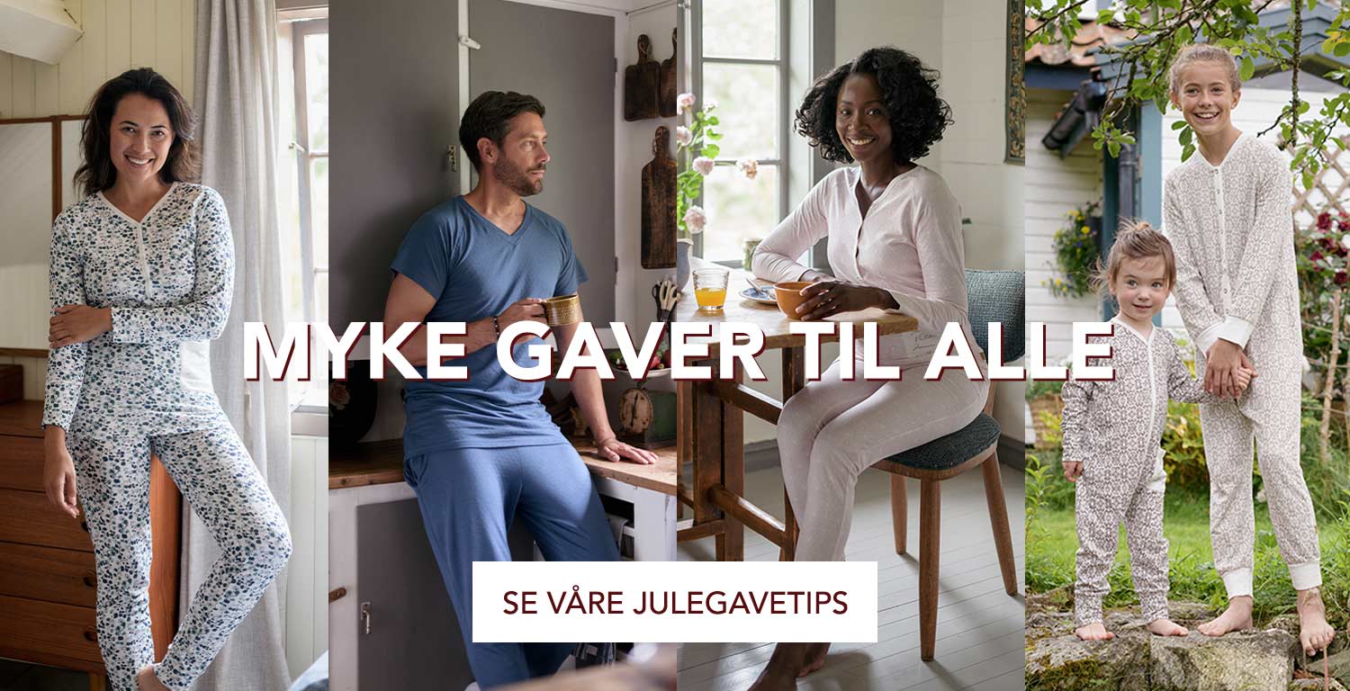 Det er få ting som gir bedre julestemning enn matchende julepysjer! Perfekt til deilige morninger gjennom hele juletiden. Søk på “Julefest” og finn de andre plaggene i akkurat samme mønster, til hele familien. God jul!