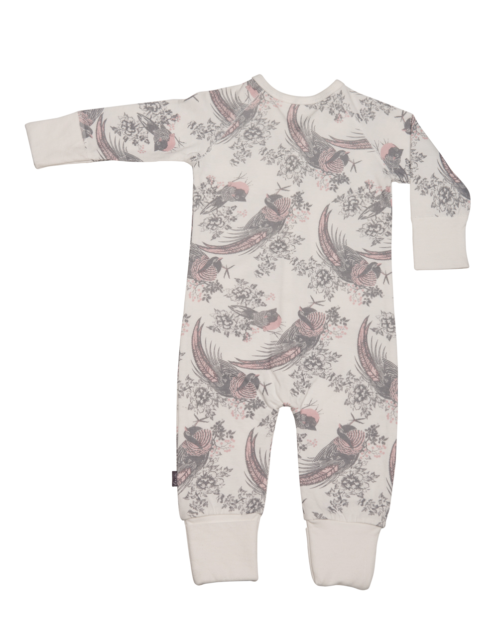 Søt pysj med rosa orrhaner. Dekorativ lomme med vers fra Arne Garborgs "Vaardag" hentet fra Haugtussa. Den har overbrettbare votter i str. 56 og 62 og overbrettbare sokker i alle størrelser. Printet er fult av fuglen orrhane/orrhøne, kjønnet på fuglen vet vi ikke, men det har ikke den store betydningen 🙂 Bilde av fuglen kommer fra en gammel tallerken funnet på en gjenbruksbutikk. Bambus viskose/bomull.